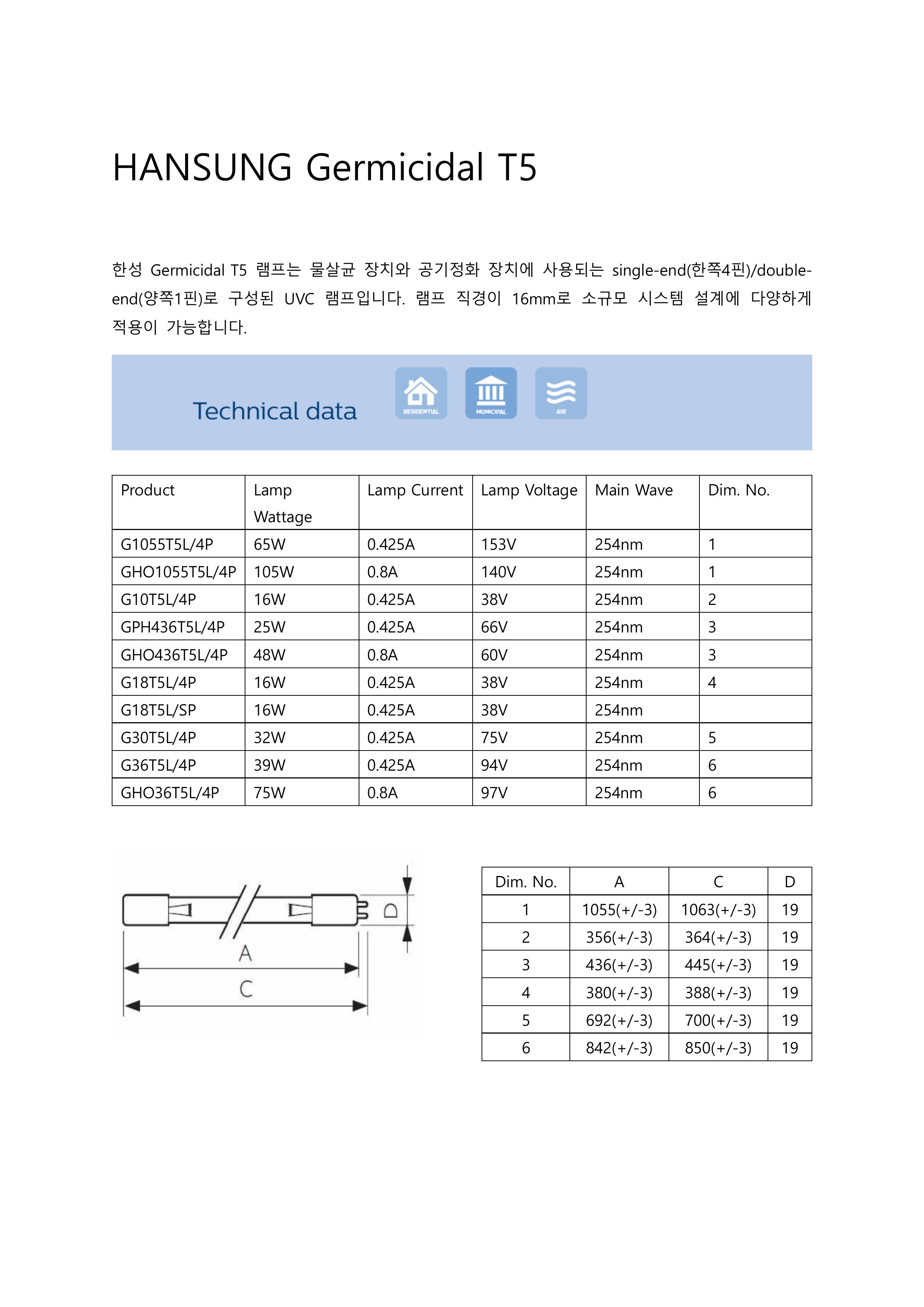 - home > UV-C(»ì±Õ)·¥ÇÁ > ¼ö󸮿ë(UV-C) > G36T5L/4P 39W (GPH843T5L ´ëüǰ)
